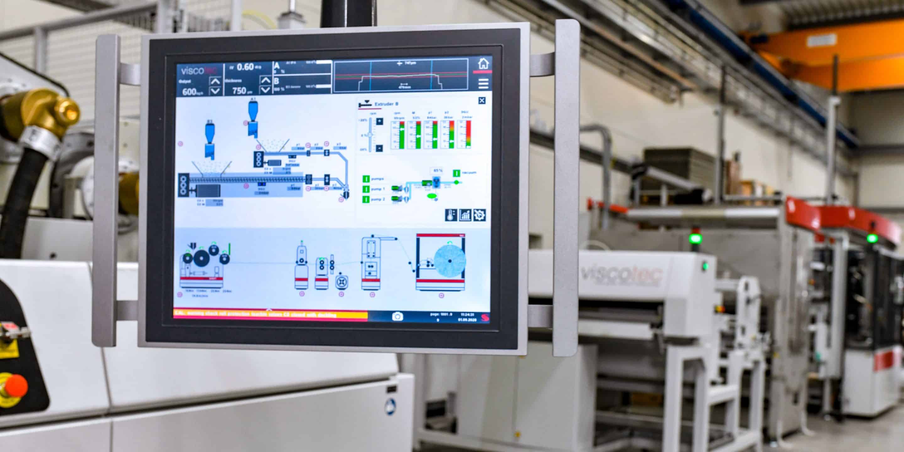 The Viscosheet solution tailored to your needs can be realised from a simple mono-extrusion system to a multi-layer, multiple co-extruder format able to create a co-extruded, laminated, bi or tri-tone sheet that is monitored continuously by Viscotec’s own control system ensuring total control, feedback and critically true recall of the entire lines operations retrievable by yourself at any time through the integrated machine database protocol.